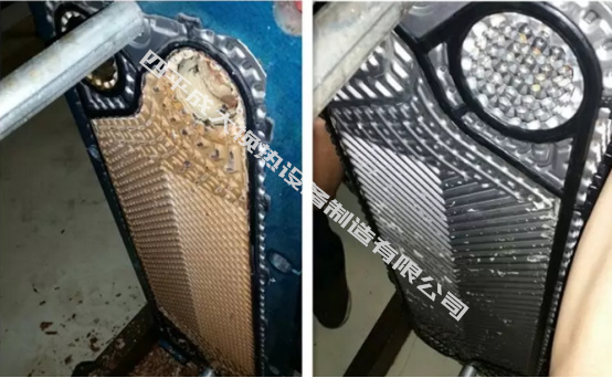 板式熱交換器由于長時間工作,傳染板片表面將產生不同程度的污垢或沉積物,從而增加流阻和降低傳熱性能,主要表現為進出口壓力表壓差增大和冷介質出口溫度降低,因此必須對其檢查清洗。