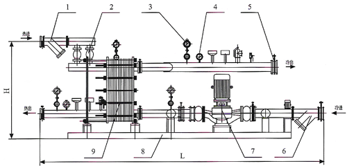 8. Base 9. Plate heat exchanger 10. Make-up pump (such as steam heating unit, vegetable water heater can be installed according to user requirements, etc.)
