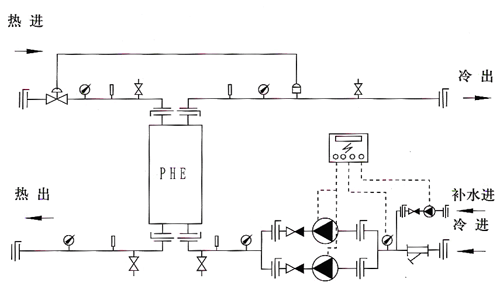 The self-operated temperature control valve controls the heat exchanger unit, which has the function of manually controlling the heat exchanger unit, and controls the water supply temperature of the secondary network of the heat exchanger unit through the on-site self-operated temperature control valve. Through the remote pressure gauge and controller, the water can be replenished automatically at constant pressure.